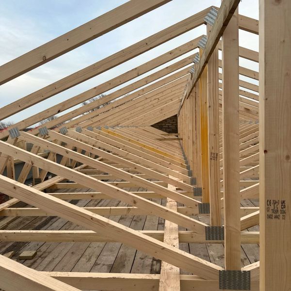 Installation of a large truss roof structure within a 70-year-old barn, forming the principal carpentry package in preparation for its conversion into a residential dwelling
